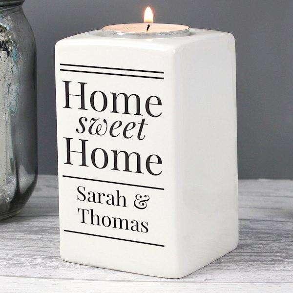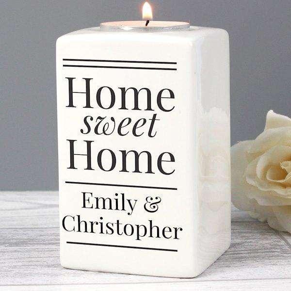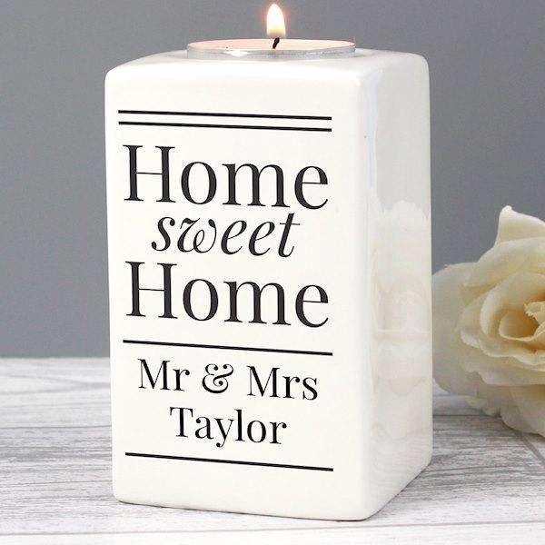 This Personalised Home Sweet Home Tea Light Candle Holder is a stylish and modern way to add a personalised touch to the home. Perfect gift for new homes and for her.