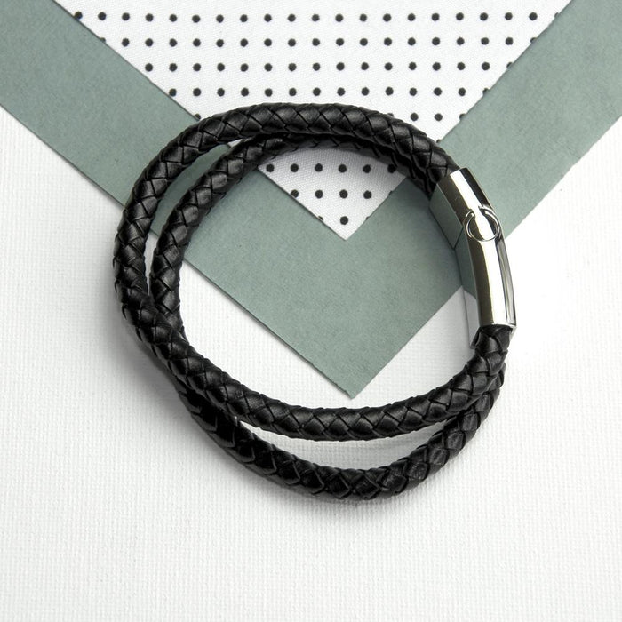 Personalised Men's Dual Leather Woven Bracelet In Black
