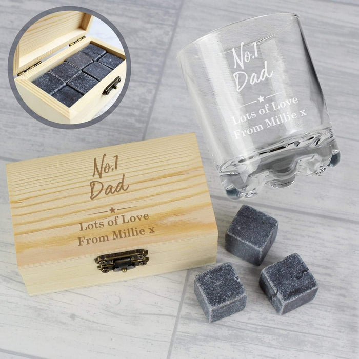 This personalised Whisky Stones and Glass set makes a great gift for any whisky enthusiast. Meaning they can enjoy their drink without watering it down savouring every last drop, the first is always as good as the last!