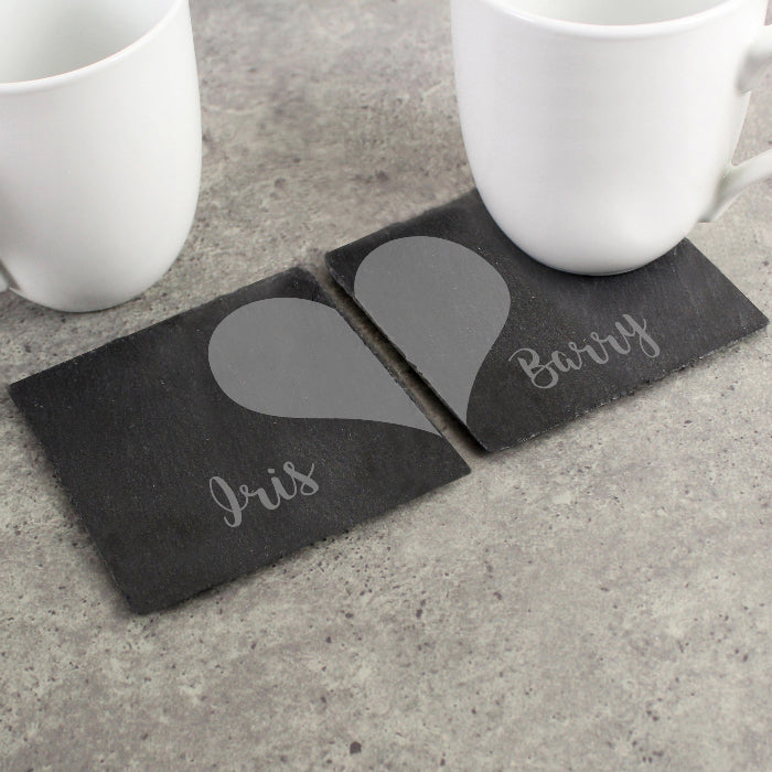 Personalised Two Hearts Couples Slate Coaster Set