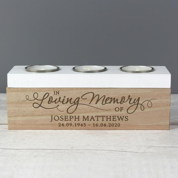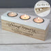 The tea light box can be personalised with 2 lines of text with up to 30 characters per line.