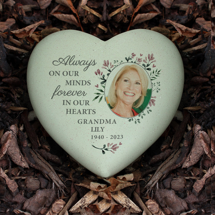 Personalised Floral Photo Upload Heart Memorial Grave Stone