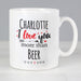 The front of this mug can be personalised with a name up to 12 characters The words 'I love you more than Beer’ is fixed.