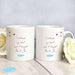 Personalise the front of this Mug Set with a name up to 12 characters on each mug. A message can also be added on the reverse up to 4 lines, with 20 characters per line. The same message will appear on the reverse of both mugs.