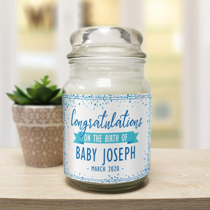 Personalised Congratulations on the Birth Candle Jar - Blue