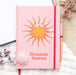 This beautifully designed journal encourages a daily practice of gratitude. The vibrant 'The Sun' themed artwork on the cover and the luxurious rose quartz pen included offers a radiant and mindful way to reflect on life's blessings. This gratitude journal includes lined paper pages to make it easy to express appreciation and create a positive mindset.