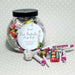 Sweet Jars and Content weigh a total of 250g Sweet Jar is plastic with black plastic screw top. Sweets are an assortment of Swizzels Matlow sweets. May Contain Nuts. Lollipops are a potential choking hazard. Not suitable for children under 36 months.