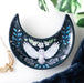 This ceramic trinket dish is shaped like a crescent moon and features a flying night owl surrounded by forest plants.