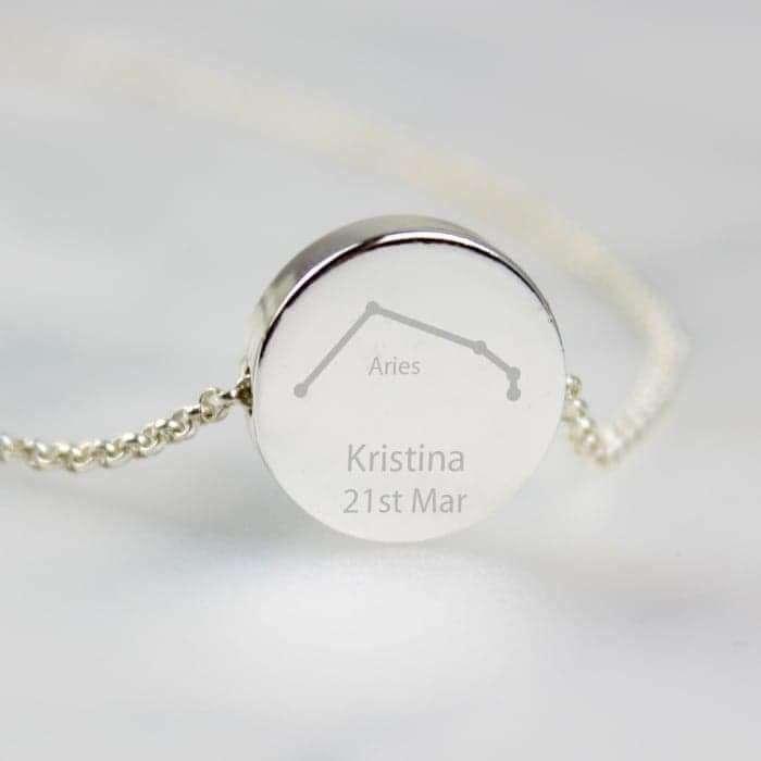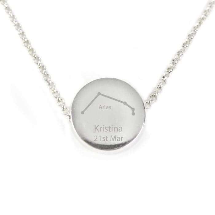 This Personalised Silver Tone Zodiac Aries (March 21st-April 19th) Disc Necklace is a stylish and elegant gift for her that is suited to all occasions.