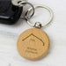 The keyring is made from solid beech wood which has a smooth finish, and comes in a black card gift box.