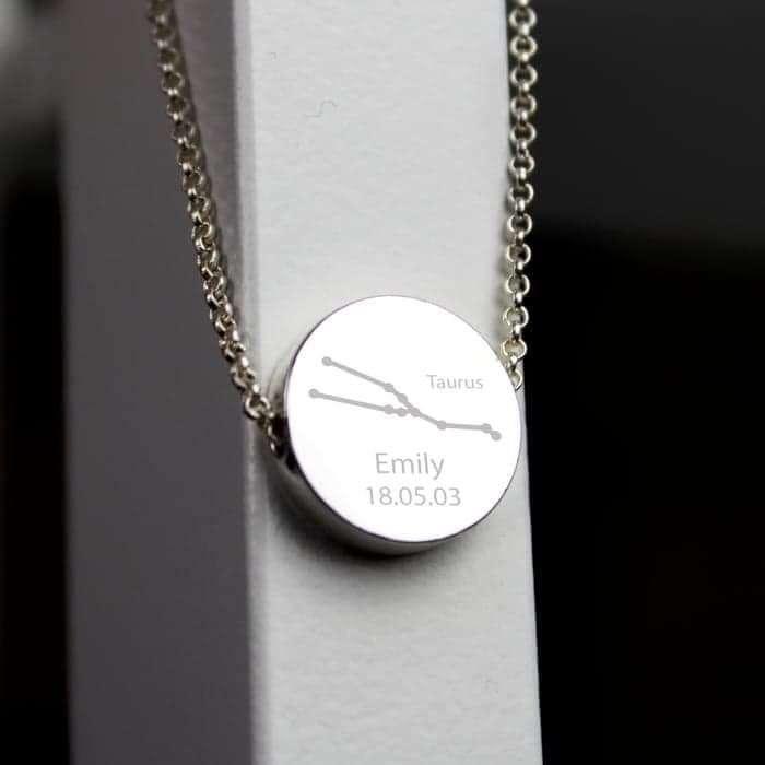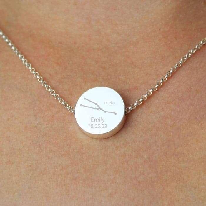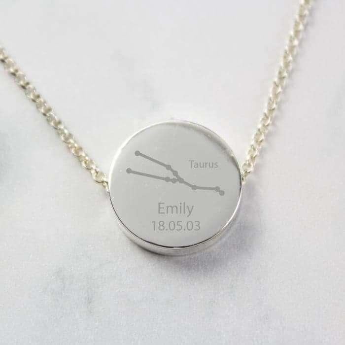 Personalised Taurus Zodiac Star Sign Silver Tone Necklace (April 20th - May 20th)