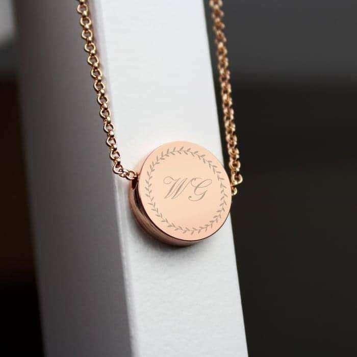 Personalised Wreath Initials Rose Gold Tone Disc Necklace