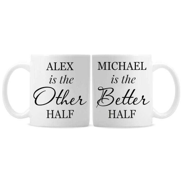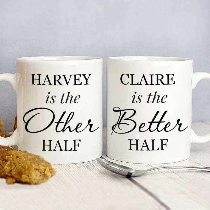 This stylish personalised Other Half and Better Half Mug Set is ideal for clearly distinguishing who is the better half!