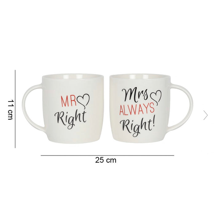 Mr. Right and Mrs. Always Right Novelty Set of Two Coffee Tea Mugs