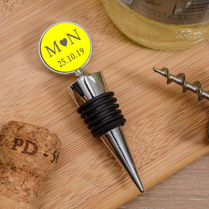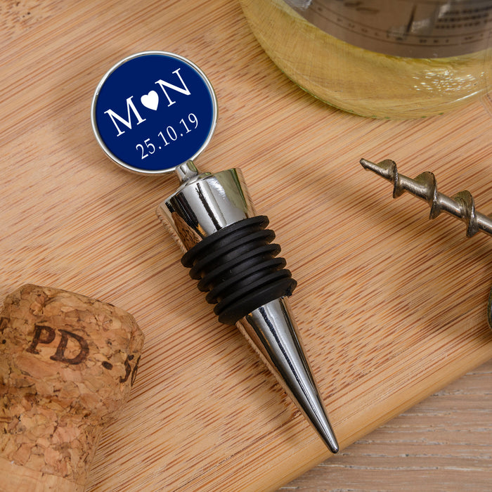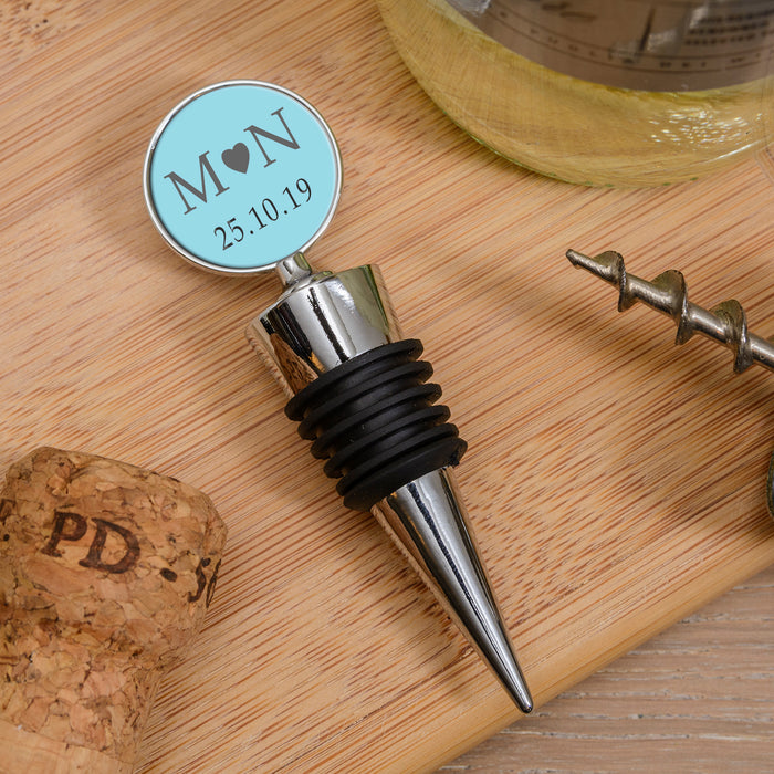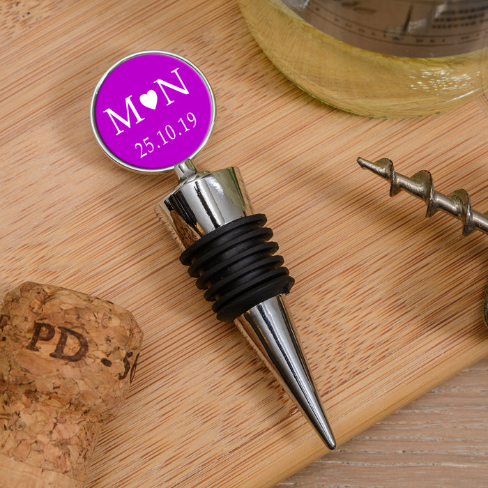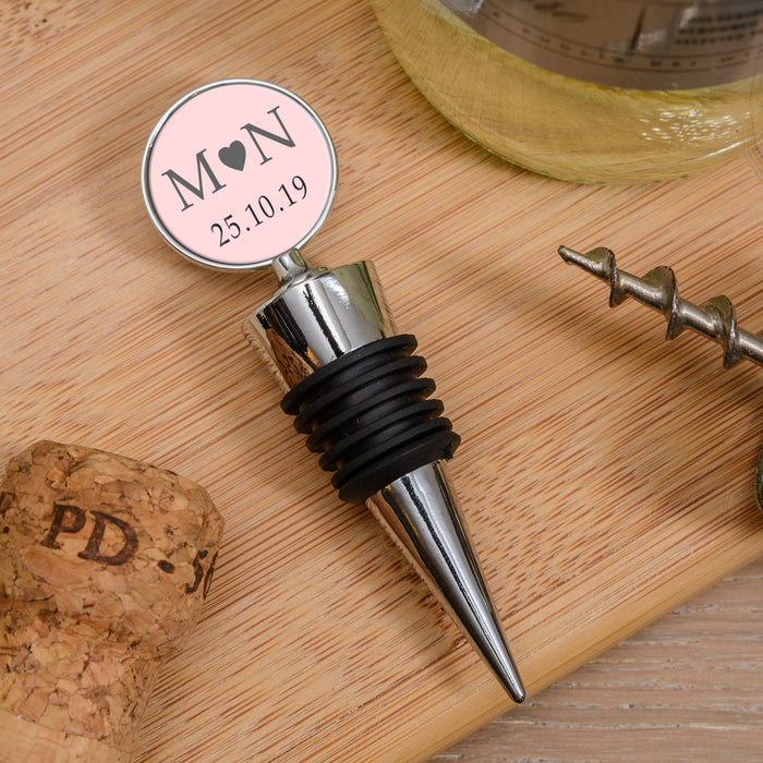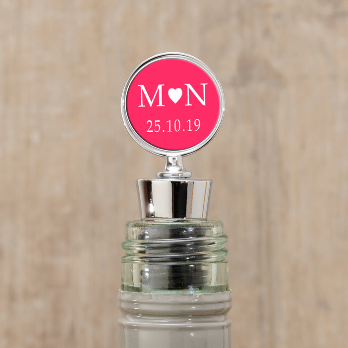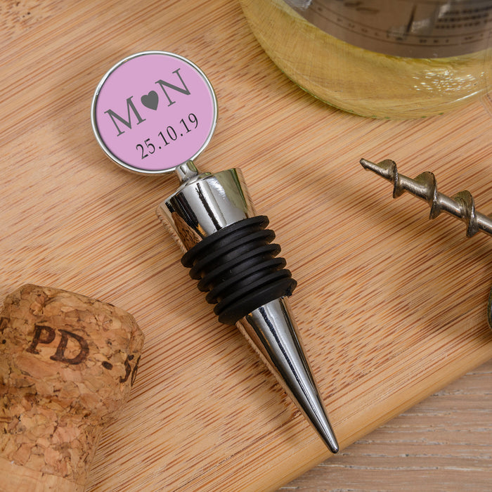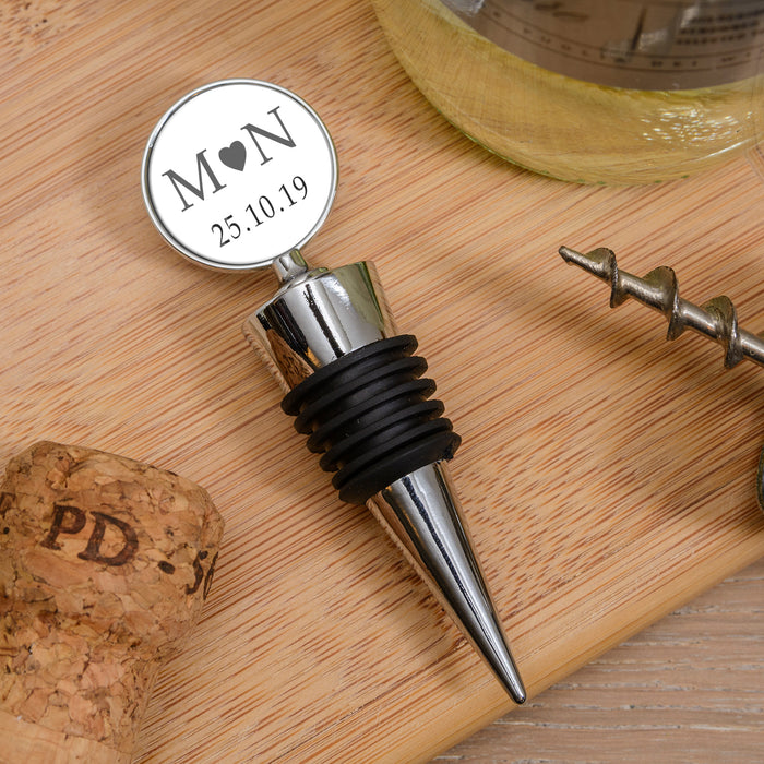 Quality bottle stopper. Personalise with 2 initials and a date of your choice. A cute heart will be placed between each initial.