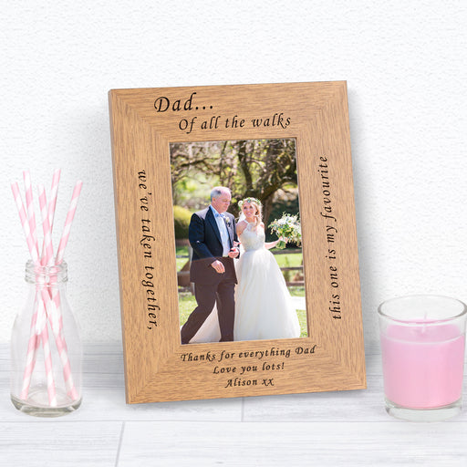 A stylish personalised oak finish photo frame. The frame is engraved Dad... Of all the walks we've taken together, this one is my favourite. The b...