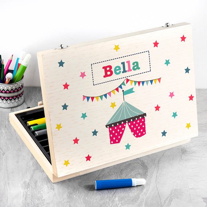 Personalised Kid’s Circus Tent Wooden Colouring Set