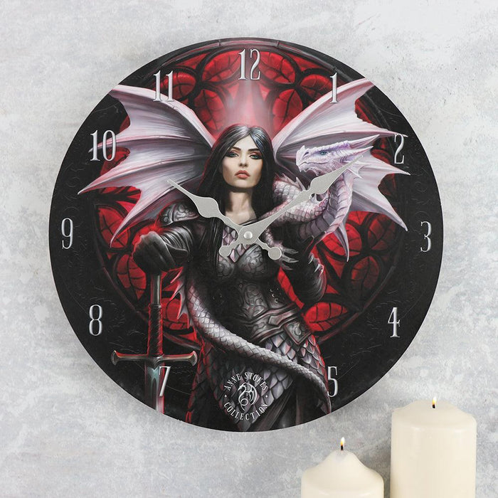 This MDF wall clock features the 'Valour' dragon and knight design by popular fantasy artist Anne Stokes.