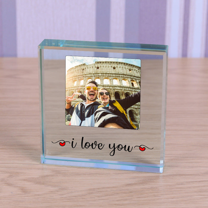 I love You Photo Glass Ornament
