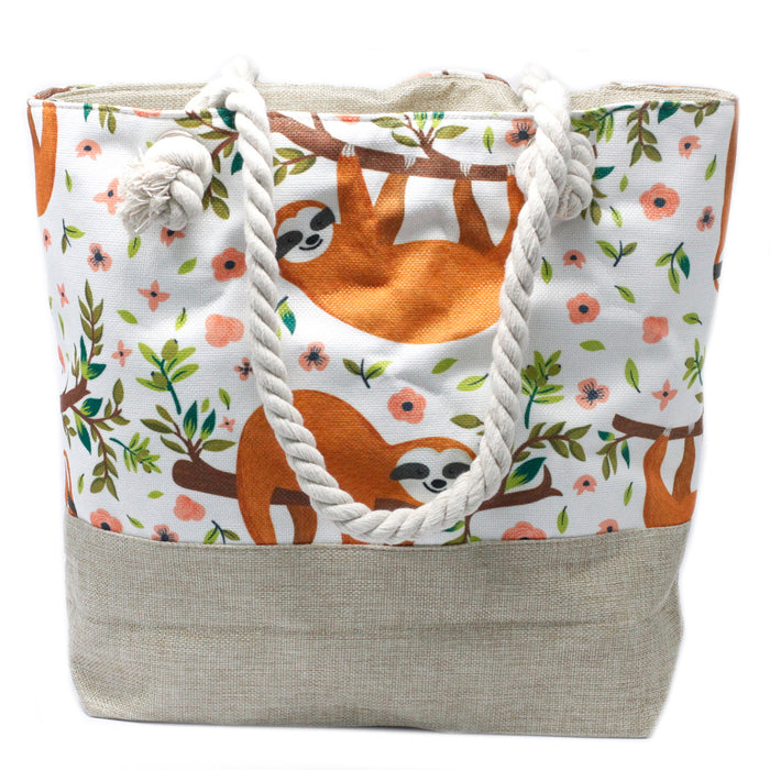 Take a look at this beautiful woven style Sloths Design Beach Tote Bags. Zip and inside pockets help keep you organized, while comfy rope handles make carrying a breeze. The soft rope handles are just the perfect length to fit comfortably over your shoulder or down by your side.