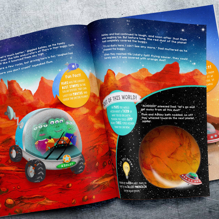 Throughout the story each planet is explored in order and your child finds out fun facts about each of them along the way. Which planet will the alien family end up on and will they enjoy their holiday?