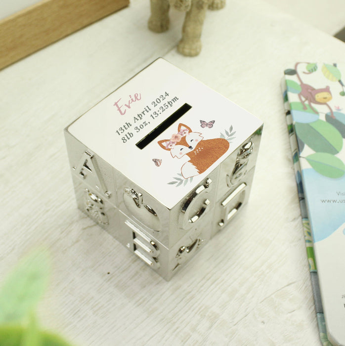 Personalised Woodland Fox ABC Silver Plated Money Box
