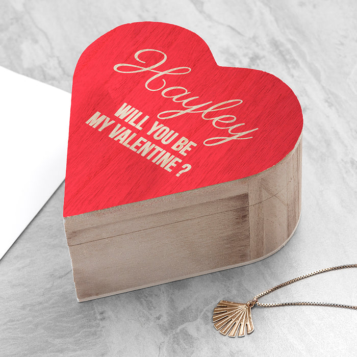 Personalised Will You Be My Valentine Wooden Heart Trinket Box