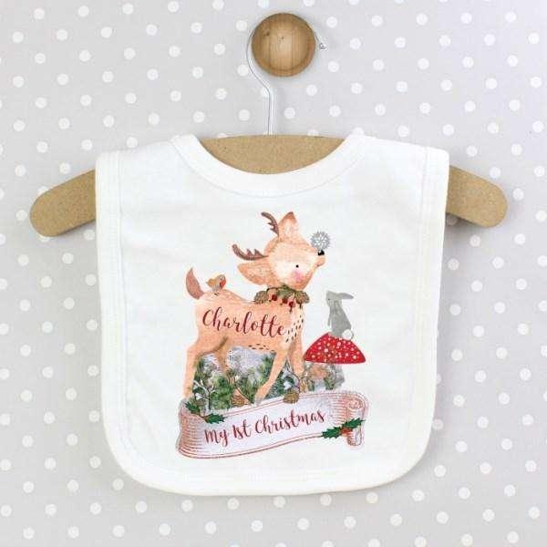 This adorable Personalised Christmas Fawn Bib is perfect for celebrating baby's magical first Christmas.