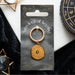 This celestial keyring features a metal, gold tone astrology wheel charm on a matching backing card.