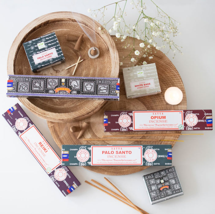 This box contains 12 packs of Satya Palo Santo incense sticks. This sweet and woody scent is said to enhance creativity and confidence. Satya incense are handmade by artisans in India using the highest quality ingredients.