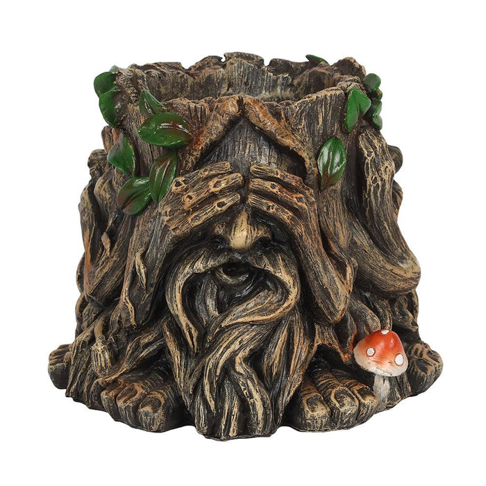 Suitable for indoor or outdoor use, this plant pot features the Green Man in a See, Speak, Hear No Evil post. Small details like toadstools and leaves brighten up this plant pot and add whimsy and character. Plant not included.