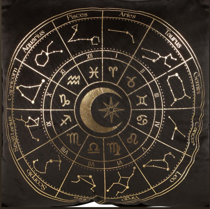 35cm Square Black Astrology Wheel Cushion