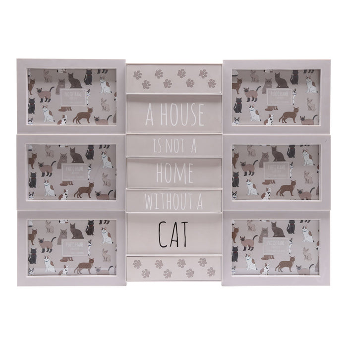 Perfect for cat lovers of all kinds, this photo frame includes 6 areas to display pictures of their beloved furry friends. Features 'A house is not a home without a cat' text. 50cm x 37cm. Product Dimensions: H35.5cm x W48.5cm x D2.5cm Packaged Dimensions: H36.5cm x W50cm x D3cm