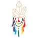 Brighten up a wall with this unique hanging decoration. A gold metal wire crystal formation is accented by wooden rainbow beads and vibrant tassels on this eyecatching piece.