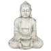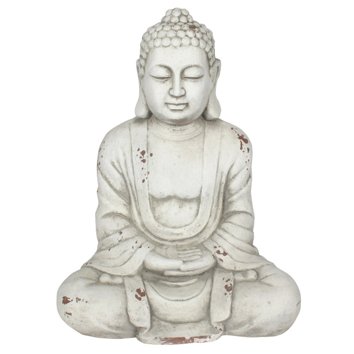 This white Buddha sits serenely with its hands resting in its lap. Perfect for adding an ethnic ambiance to an outdoor space. Made from fibrestone this item is suitable for outdoor use except in freezing conditions.