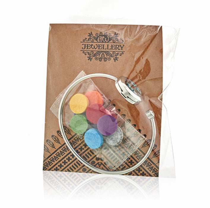 Each bracelet contains a tiny piece of pad which holds a few drops of oil that slowly diffuses through the ventilation holes on the front. The scent of your oil can last for several days, but you can always top up more oil to the pad after the oil has completely diffused.
