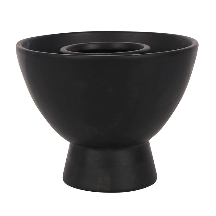 This black terracotta smudge bowl is detailed with a stunning crescent moon and stars design. Smudge bowls are used for burning herbs or holding lit smudge sticks whilst they burn. Product Dimensions: H10.5cm x W13cm x D13cm Packaged Dimensions: H14cm x W16cm x D16cm