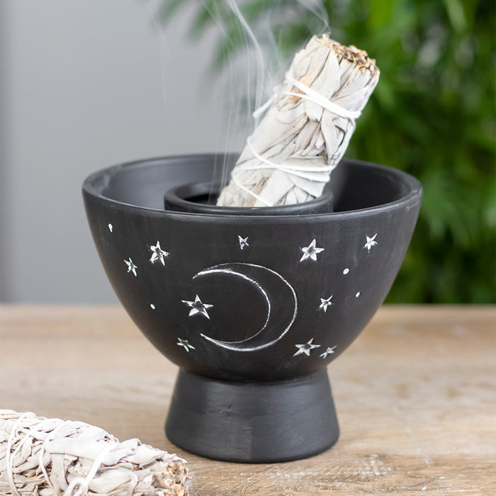 Black Moon and Stars Terracotta Smudge Bowl
