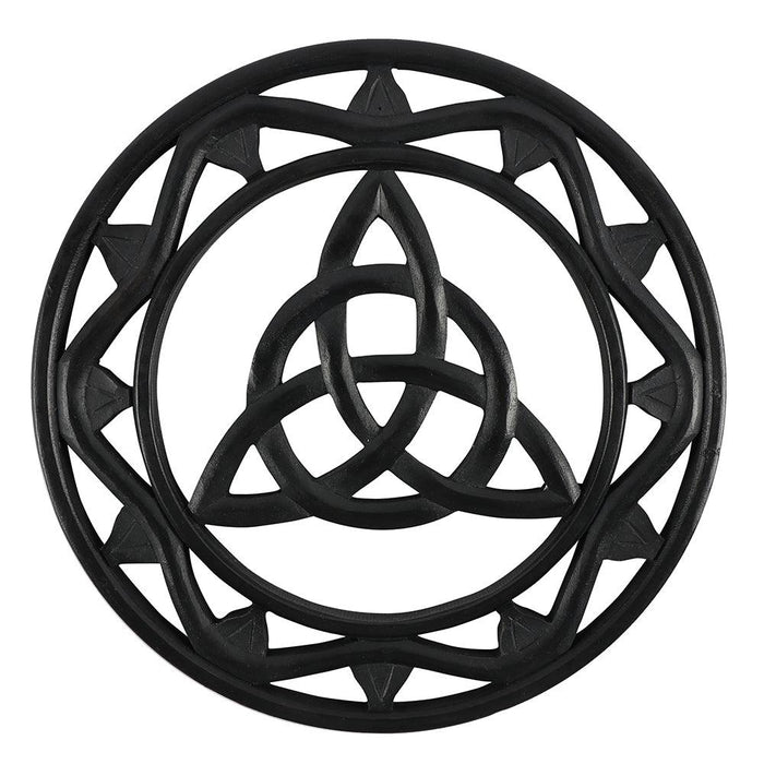 Bold and striking black wooden Triquetra Wall Art. A perfect statement piece for the home or even a location or venue with a magical decor theme.