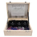 Carry an angel with you everywhere you go. This wooden display box contains 24 glass angels in blue, pink and clear glass. Each angel has it's own velvet carry pouch. Packaged Dimensions: H8cm x W21cm x D18cm