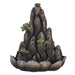 This resin backflow incense burner features a tall, rocky mountain cliff with Japanese bonsai trees beautifully accenting the side. To use, place a backflow cone on top and watch as the smoke gently flows down the mountainside and pools in the petal-shaped dish below.
