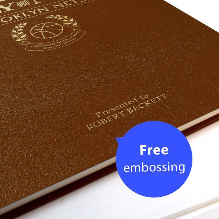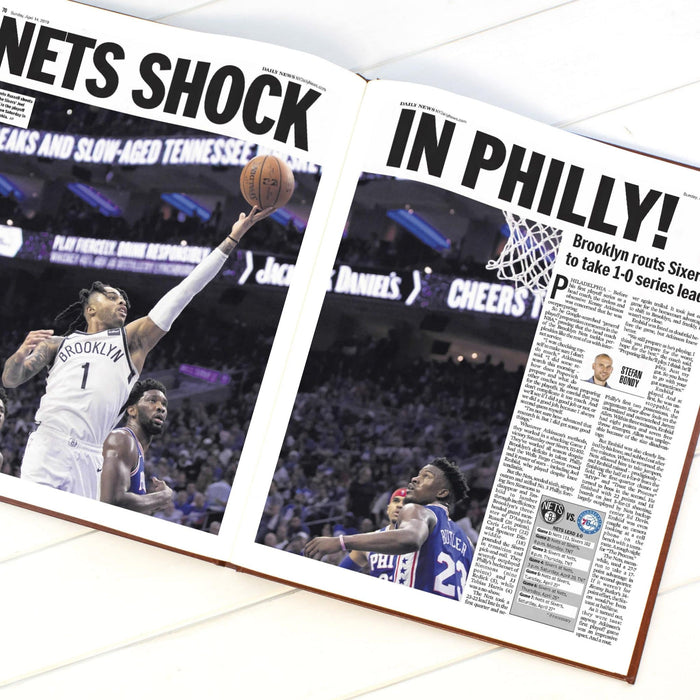 From 1970 to the present year, this book provides a unique perspective on the Net's glorious history. Featuring articles from the New York Daily News, this addition allows you to flick through the pages of the Net's history to relive and reminisce upon an incredible timeline of wins. This newspaper book is beautifully bound in a tan leatherette cover, with the recipient's name embossed on the front. You can also include a personalised message to make this book a truly special gift for any basketball fan.