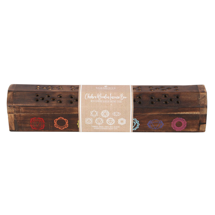 This incense gift set includes 10 mixed fragrance incense sticks in a mango wood box. Printed with seven chakra symbols, this box doubles as both an incense holder and storage. Scents include; Strawberry, Orange, Lemon, Mint, Blueberry, Lavender and Blackberry.