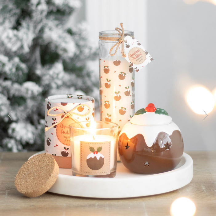This festive oil burner comes in the shape of a traditional Christmas pudding topped with a holly leaf and red berry lid.