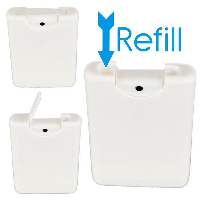 Refillable: Yes - Lift up the clip that protects the sprayer and pull the clip out. The hand sanitiser can then be refilled through the hole and the clip put back in.