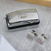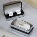 These elegant, square cufflinks are the perfect embodiment of sophistication and sentimentality. Crafted from durable stainless steel and finished with high-shine rhodium plating, they are designed to complement his wedding day attire and stand the test of time. The understated yet stylish design ensures they can be worn for years to come, reminding him of this special day whenever he wears them.