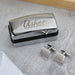 The presentation is just as important as the gift itself. These cufflinks arrive nestled in a sleek, chrome-effect box. But this isn't just any box; it's engraved with the heartfelt words "Usher" on the lid. This inscription instantly conveys the special significance of the gift and his integral role in the wedding celebration.