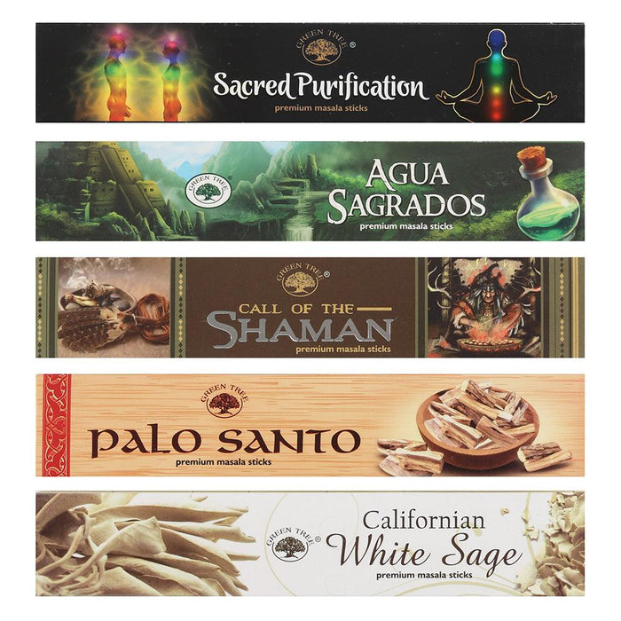 The Green Tree Yoga Collection includes 6 varieties of boxed masala incense sticks in one convenient gift set that's perfect for cleansing negative energies.