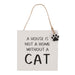 Sweet decorative accessory for any home with a pet cat, this hanging sign reads 'A House is Not a Home Without a Cat'.