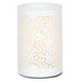 This elegant, electric oil burner lights up to showcase a lacy pattern and is compatible with both scented fragrance oils and wax melts. To use, place on a level and heat resistant surface before placing oil or wax melts in ceramic dish and plugging in burner. Unplug when not in use and let cool completely before moving or cleaning removable dish with warm, soapy water.